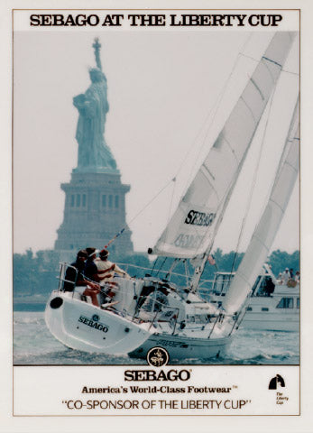 Popular with boaters, sailors and ship owners for their timeless elegance and sure-footed grip, Sebago's Docksides are naturally associated with many of the world's great marine races. Throughout the 1980s, the famous rubber-soled shoes with corrosion-resistant brass eyelets sailed alongside Gary Jobson in the 1983 America's Cup, but also in the Celebrity Regatta, the Newport Bermuda Race and the O-Star. In the 1990s, Sebago confirmed its status as a leader in nautical footwear by becoming the official equipment supplier of the American sailing team.