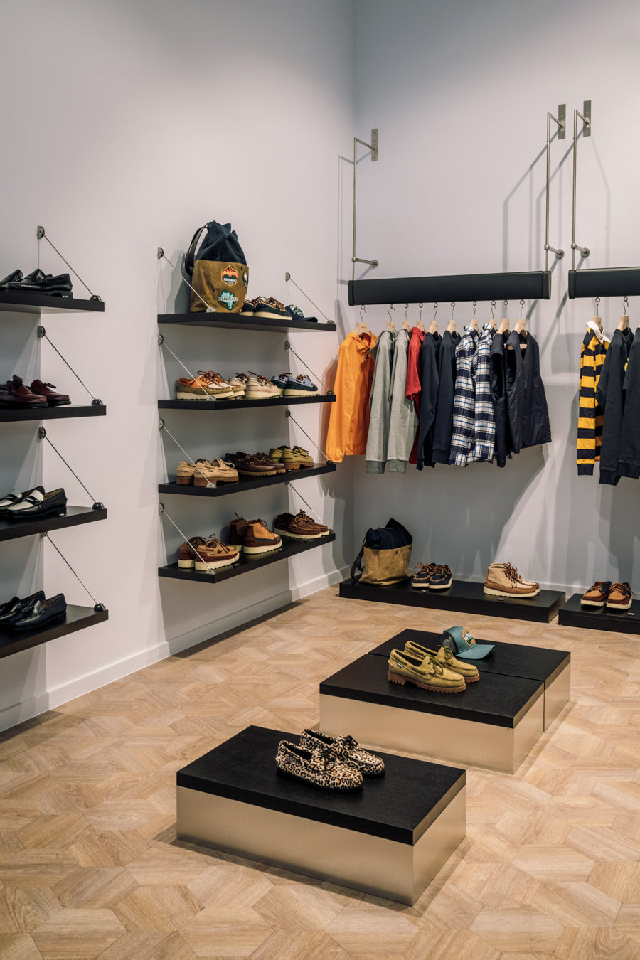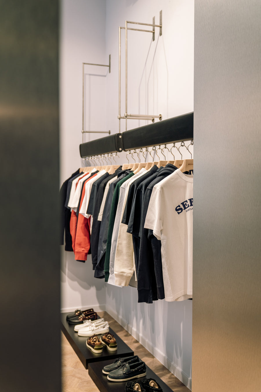 Depuis avril 2022, l'impressionnant magasin de Sebago est situé au cœur d'Anvers, dans la très animée Nationalestraat. Il était bien sûr un match parfait pour l'image de Sebago dans le quartier de la mode d'Anvers. L'architecte d'intérieur Sarah Livemont a créé un magnifique magasin qui respire l'ambiance parfaite, mélange de tradition et de modernité. L'espace de vente spacieux et décoré avec goût dégage une sensation de luxe, tandis que les employés sympathiques vous accueillent à bras ouverts. Que vous recherchiez un classique intemporel ou un modèle tendance, la vaste gamme Sebago offre quelque chose pour tout le monde. Cette boutique propose une large gamme de chaussures pour hommes et femmes, une étonnante collection de vêtements unisexes ainsi que de nombreux accessoires.